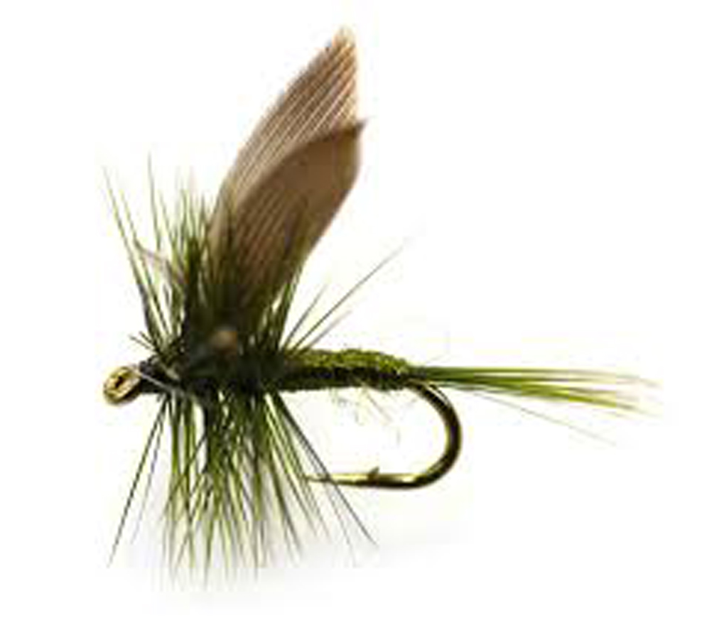 In fly fishing, fish are caught by using artificial flies that are dry ( a fly that is designed to float) and include such patterns as